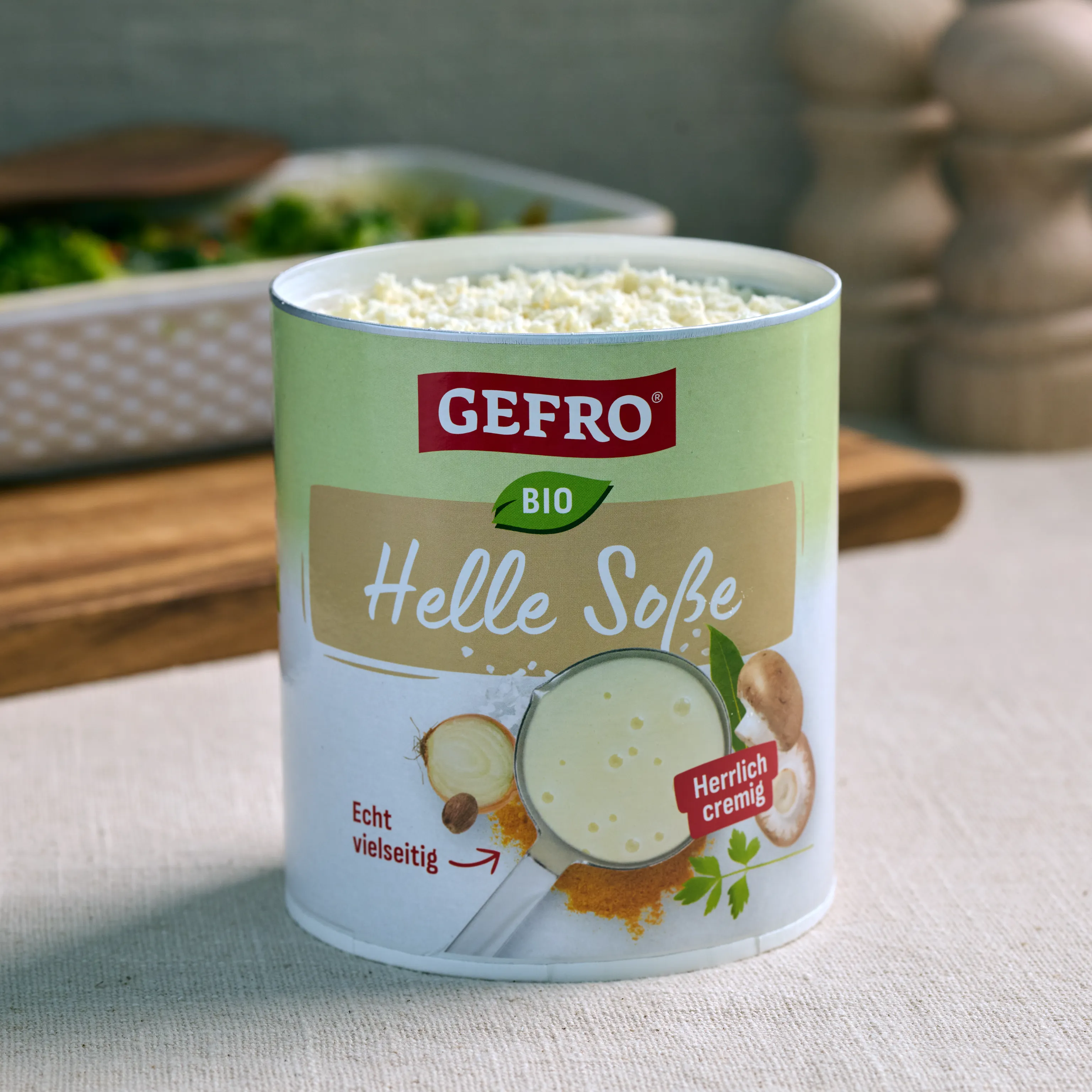 Die GEFRO Helle Soße Bio ist eine cremige helle Soße für Gemüsepfannen, Fischgerichte und Beilagen. Ihre mild abgestimmte Rezeptur sorgt für feinen Geschmack und macht sie vielseitig einsetzbar in der warmen Küche. Perfekt für Gemüsegerichte, Fisch oder klassische Beilagen, wenn im Handumdrehen eine cremige Soße gebraucht wird. Sie ist schnell zubereitet und verbindet unkomplizierte Anwendung mit hochwertiger Bio-Qualität.